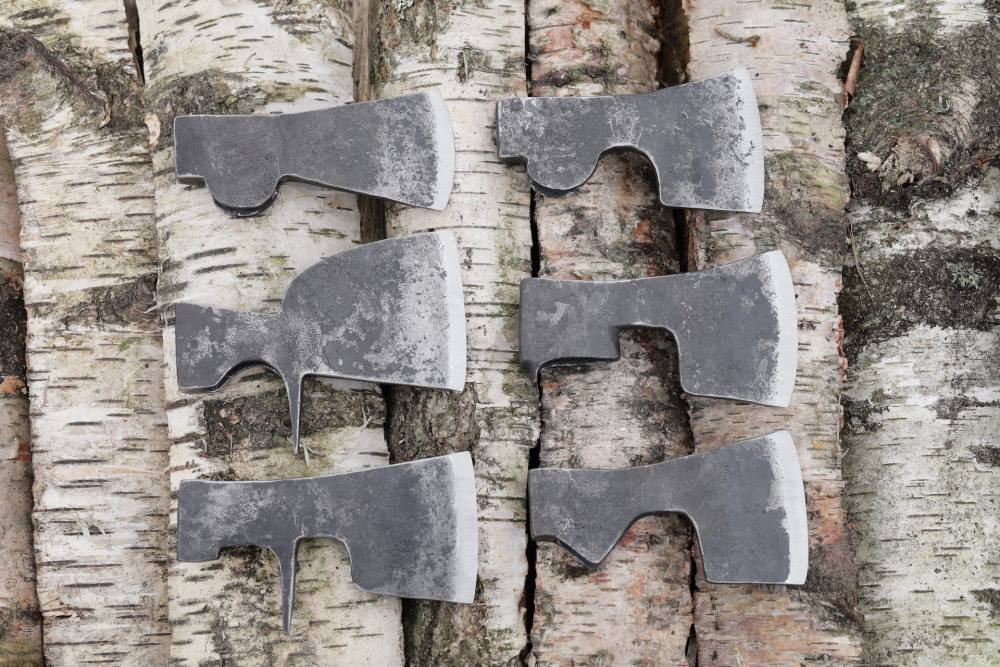 Generelt egner C45 stål sig godt til både at smede hammere og økser (Økserne på billedet er smedet af Youtuber, Bushcrafter og Smed Rune Malte Bertram-Nielsen i C45 stål)