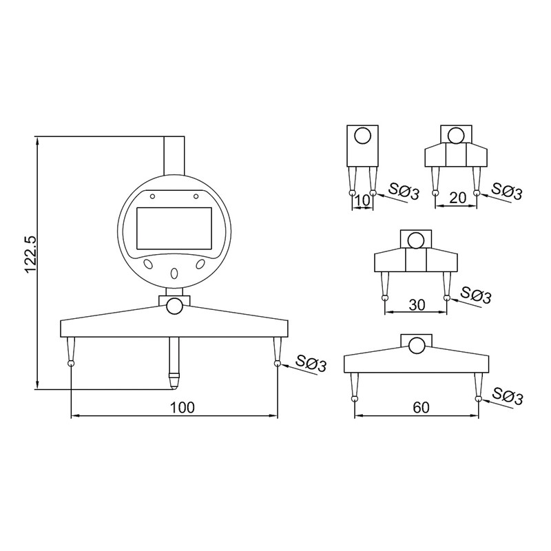 - Inkl. 5 stk. målebroer: 10 mm, 20 mm, 30 mm, 60 mm og 100 mm