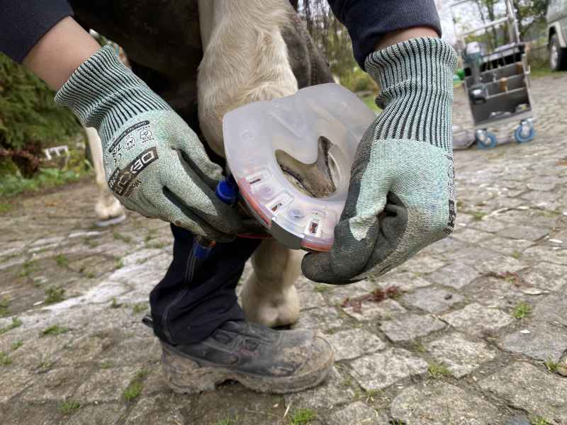 Skoen sømmes på og der er flere forskellige valgmuligheder for placering af sømmene.
