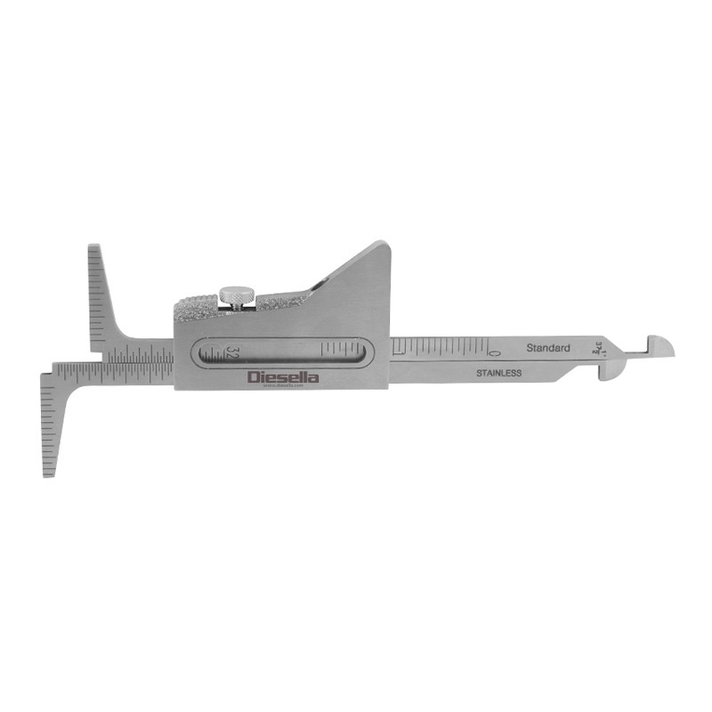 Varenummer (SKU): 35162353Rustfri kantforskydningslære 0-35 mm, luftspalte 1,6 og 2,4 mm, godstykkelses måling 0-45 mm.