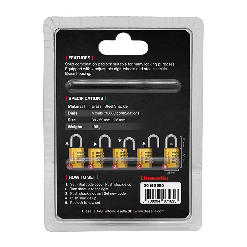 Alle i messinghus og med stålbøjle. Robust kombinationshængelås der er velegnet til mange aflåsnings formål.