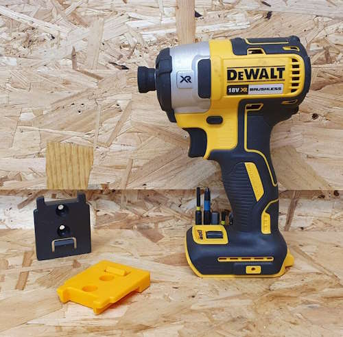 StealthMounts Batteriholdere bliver leveret i DEWALT-gul, så den matcher din DEWALT-platform.